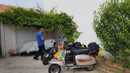 Later that day we got very lost in one town which also wasted over an hour, doing the A and B roads is fine until you get to a big town or city. We did eventually arrive at La Rochelle where we found somewhere to stay. It was at a house not far from the beach, a little like a British B&B only the house owner also lived there. We went out for a meal on the seafront and when we returned to the house I found that my Sena helmet intercom unit had melted while on charge which could have resulted in the place burning down, the smell of burning plastic was terrible, made worse by the smell of two blokes riding boots cooking by the radiator.